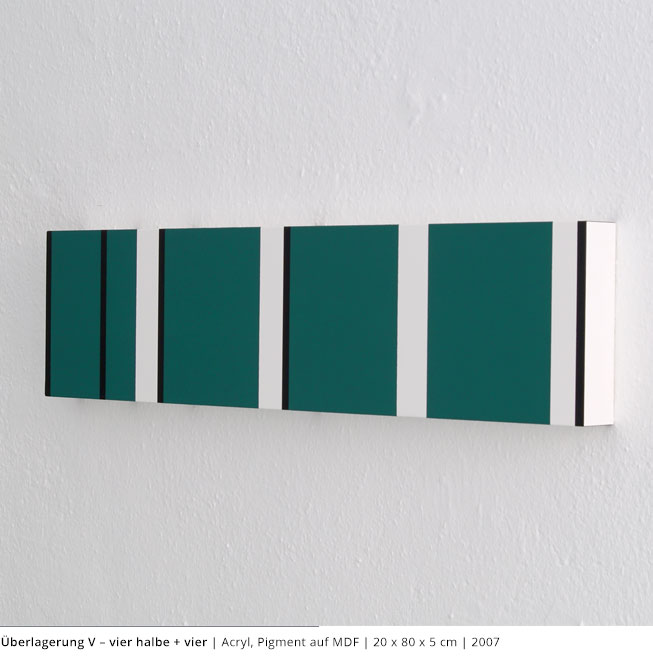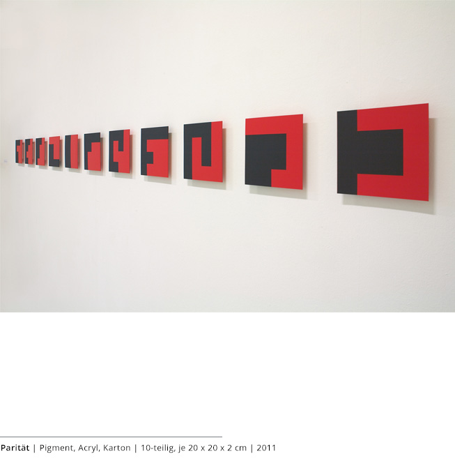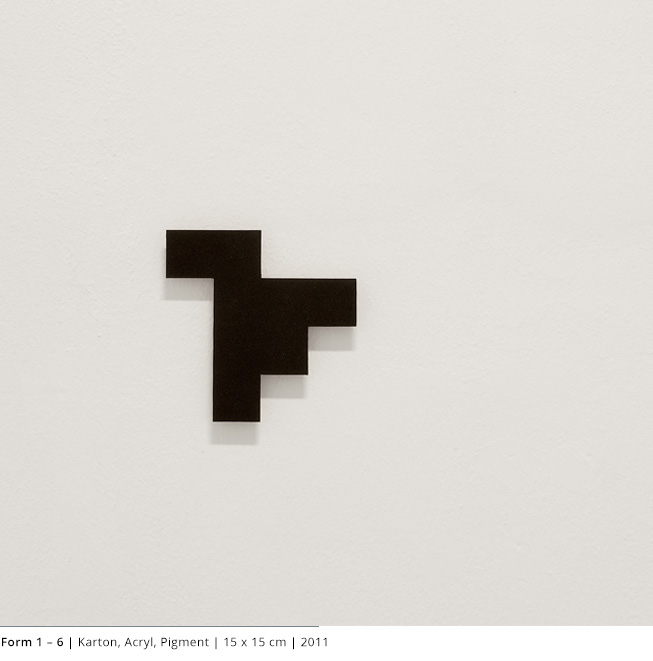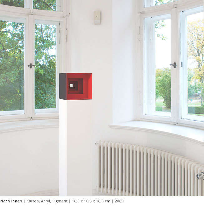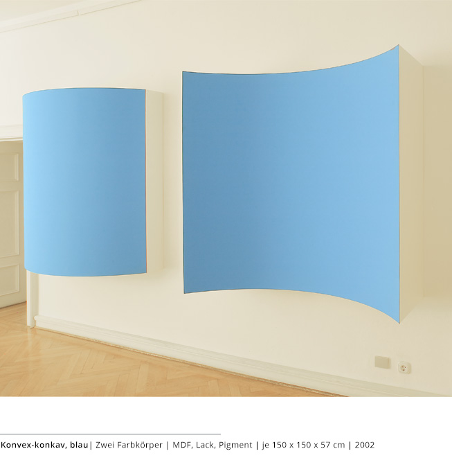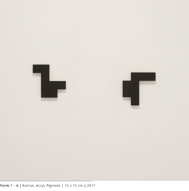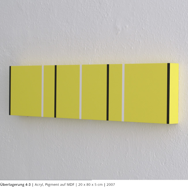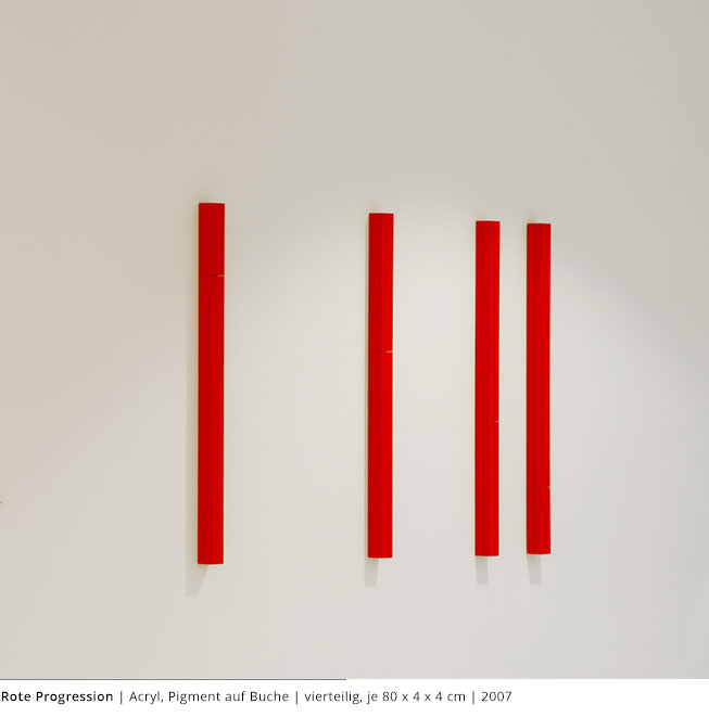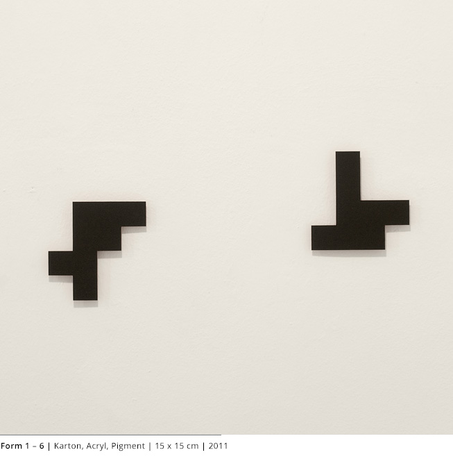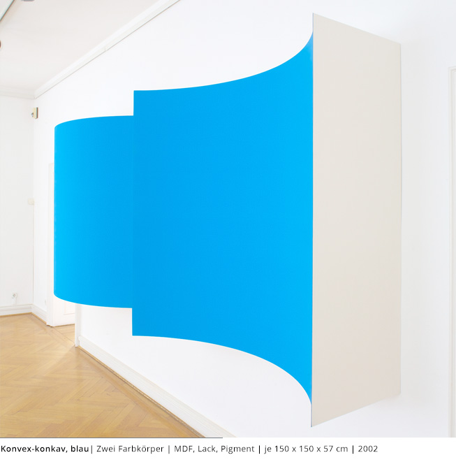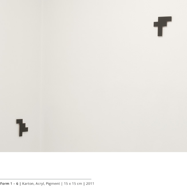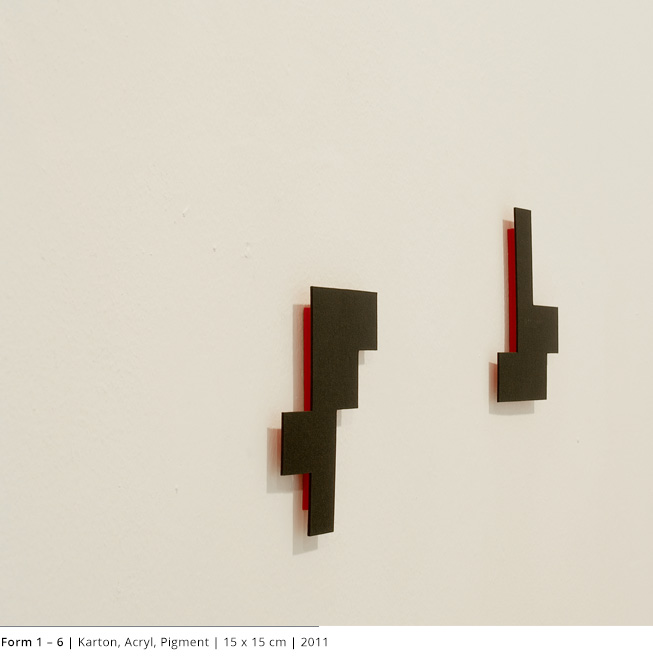 Mit den Objekten wird immer auch ein Bezug zum Raum hergestellt. Durch die Dreidimensionalität greifen sie in den Raum, auch wenn dies nicht die primäre Intention dieser Arbeiten darstellt. Vielmehr geht es darum, wie Linien, Farben und Flächen körperhaft werden.