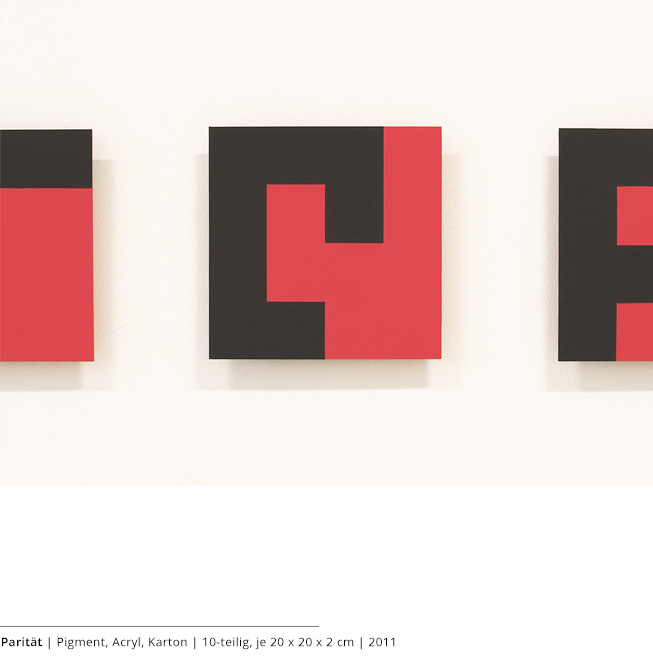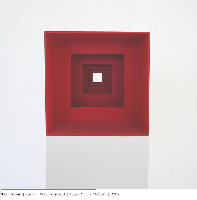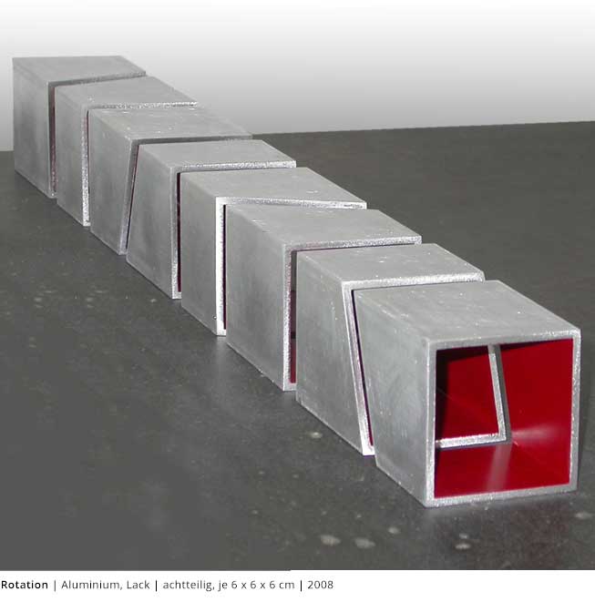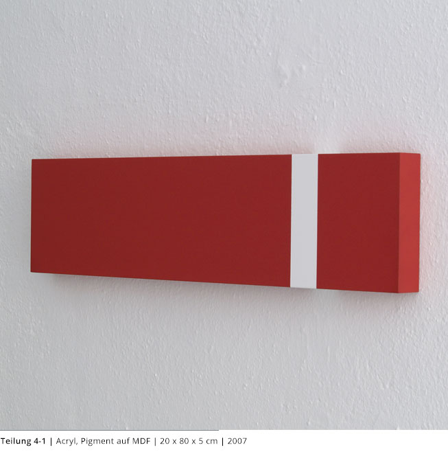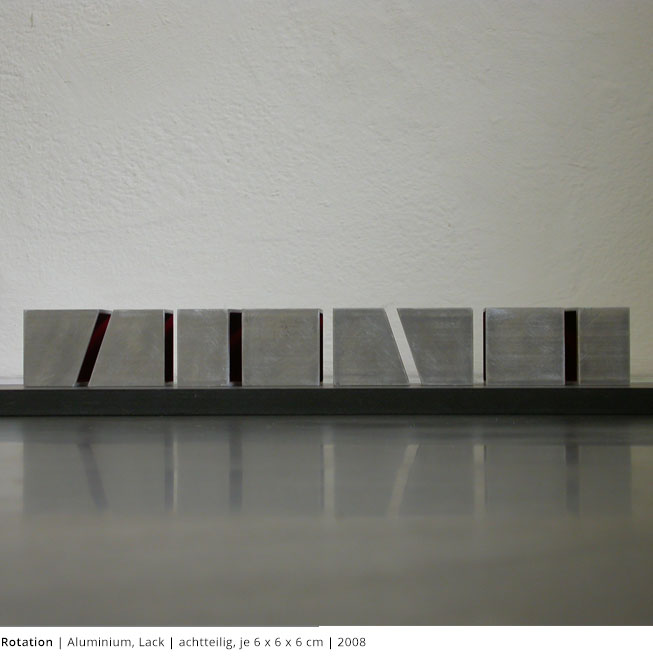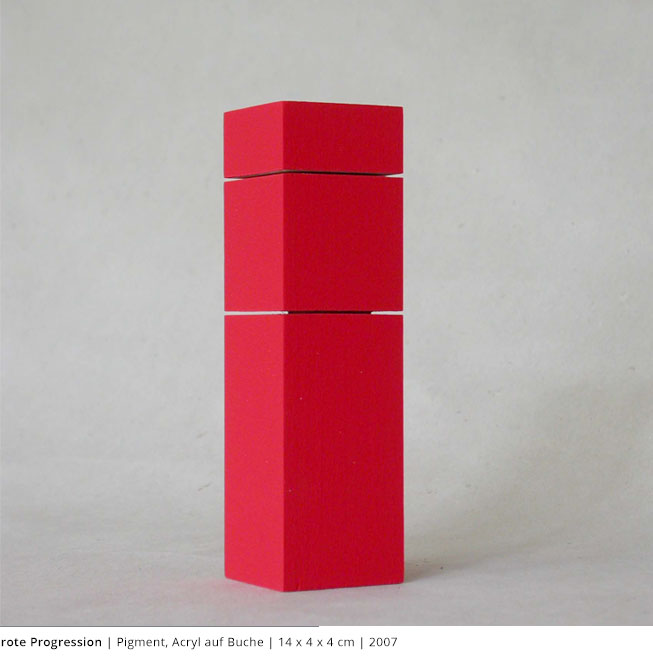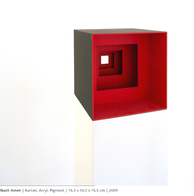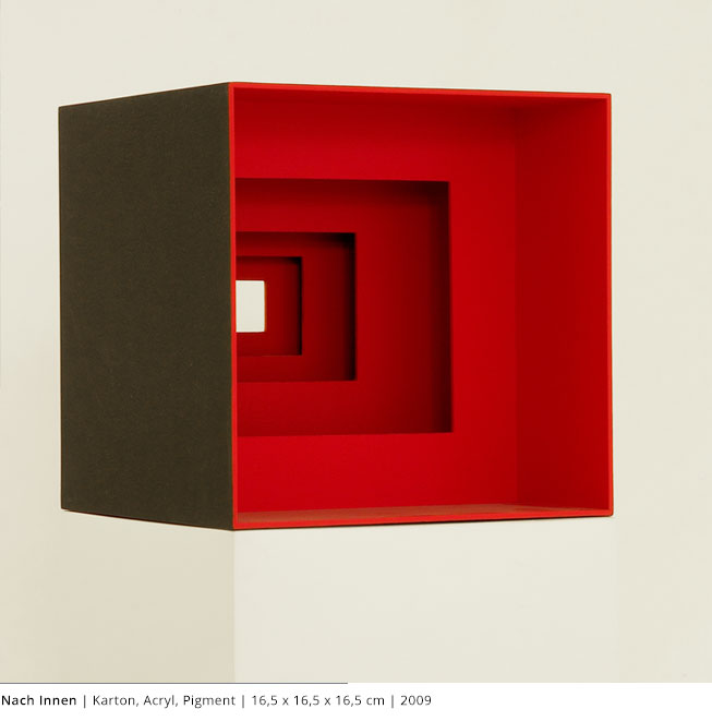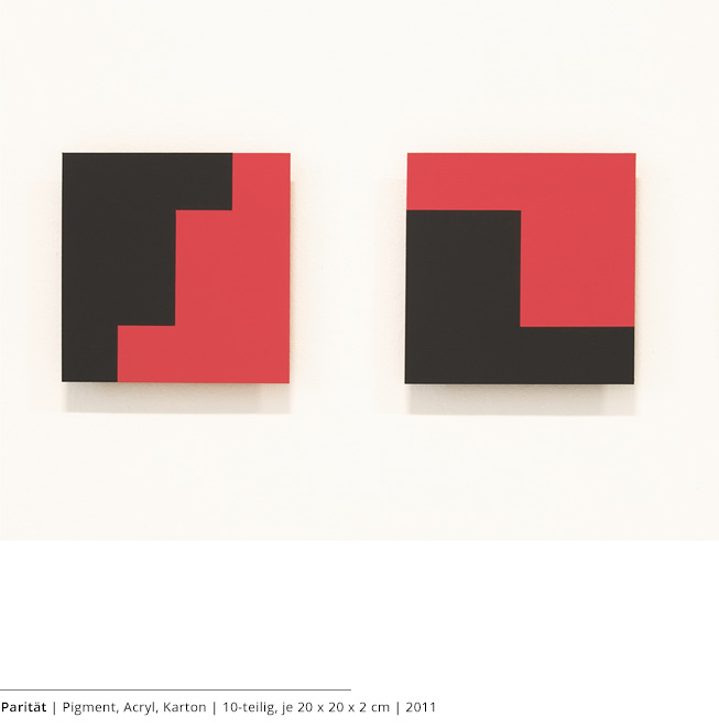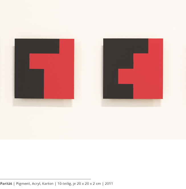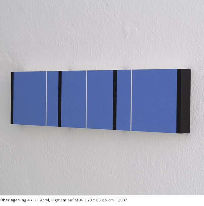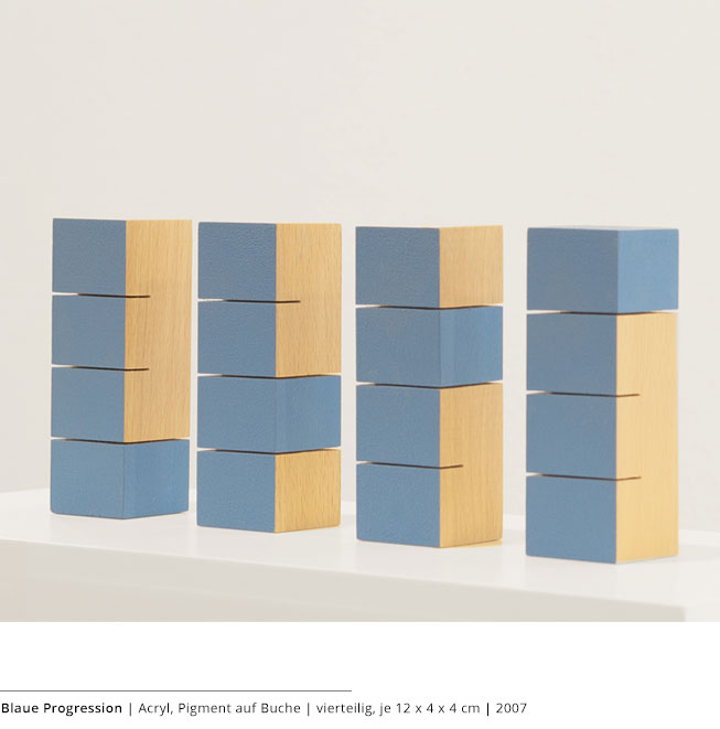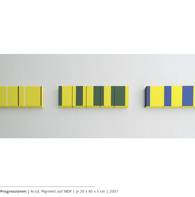 Mit den Objekten wird immer auch ein Bezug zum Raum hergestellt. Durch die Dreidimensionalität greifen sie in den Raum, auch wenn dies nicht die primäre Intention dieser Arbeiten darstellt. Vielmehr geht es darum, wie Linien, Farben und Flächen körperhaft werden.