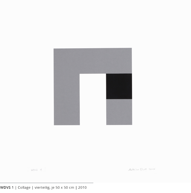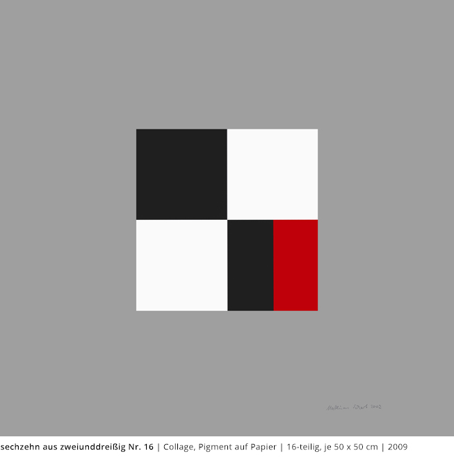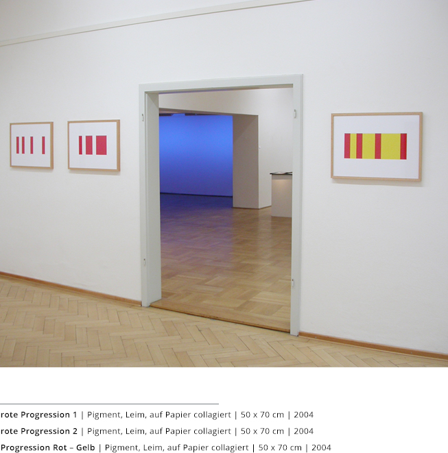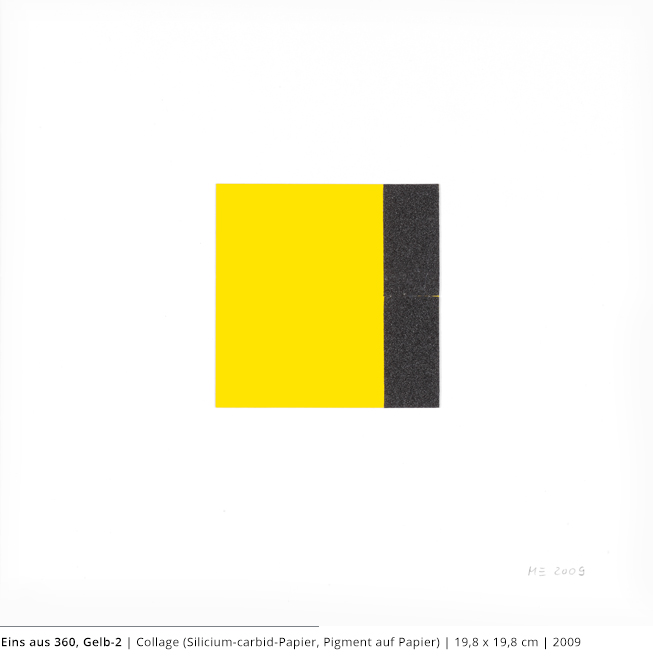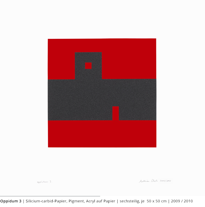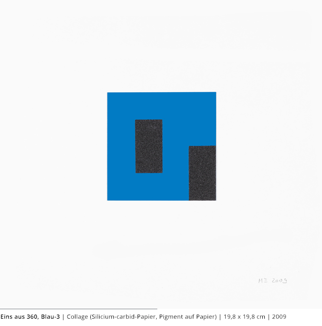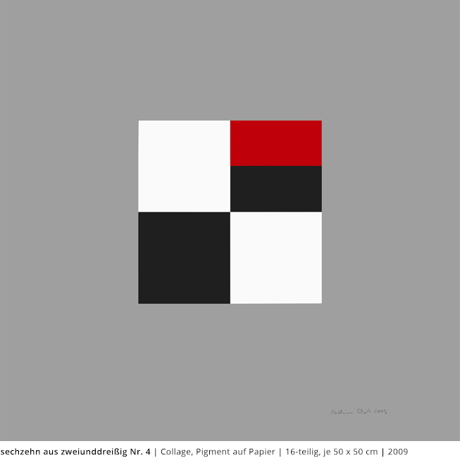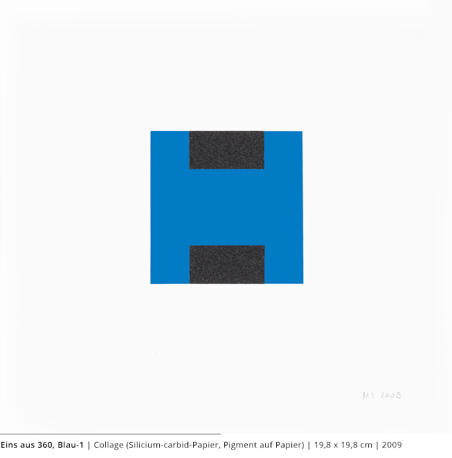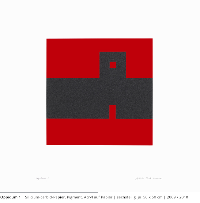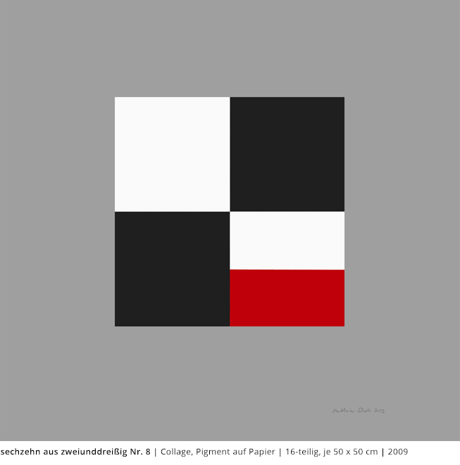 Bei den Arbeiten auf Papier wird die rein zweidimensionale, nicht gekrümmte Fläche bearbeitet. Als abgeschlossene Bildebenen zeigen sie das Zusammenspiel von Linien, Flächen und Farben und stehen nur für sich.